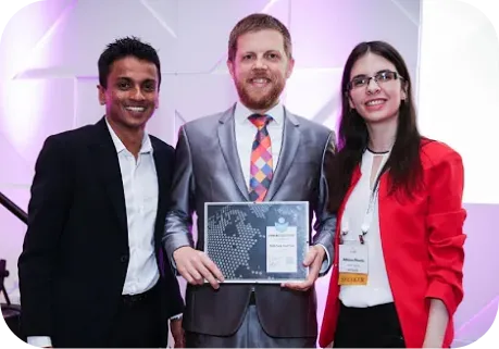 Connor presentó nuestro nuevo plan de estudios de economía en una competencia ¡y ganó el primer premio!